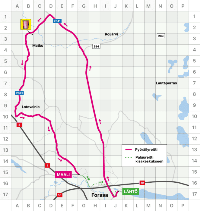 35 km ”koko kansan kuntopyöräily” starttaa lauantaina 13.6. klo 11.00. Katso reittikartta alempana.